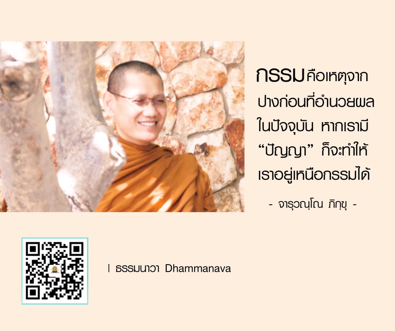 คนที่ “คิดว่า” ตนเองได้เปรียบคนอื่น นั่นเป็นเพียงการ “คิดว่า” เท่านั้น หรือคนที่คิดว่าตนเองเสียเปรียบคนอื่น นั่นก็เป็นเพียงการ “คิดว่า” เช่นกัน แท้ที่จริง ไม่มีใครได้เปรียบและไม่มีใครเสียเปรียบใครเพราะโลกนี้เป็นโลกแห่ง “กฎของกรรม” นั่นคือใครทำสิ่งใดก็จะได้สิ่งนั้น ไม่มีใครเอาเปรียบใครได้ใครทำกรรมใดไว้ก็จะเป็นผู้ได้รับผลของกรรมนั้น “กรรม” คือเหตุจากปางก่อนที่อำนวยผลในปัจจุบัน แต่ขณะปัจจุบันหากเรามี “ปัญญา” ก็จะทำให้เราอยู่เหนือกรรมได้ ปัญญาที่กล่าวถึงก็คือ “ปัญญาในอริยมรรค” ซึ่งก็คือการเห็นทุกข์ เห็นเหตุให้เกิดทุกข์เห็นความดับทุกข์เห็นวิธีปฏิบัติเพื่อให้ถึงความดับทุกข์ “ปัญญาในอริยมรรค”จะทำให้เราอยู่ “เหนือกรรม” เมื่อเราทำกิจทางด้านปัญญา(กำหนดรู้อริยสัจ ๔)อยู่อย่างสม่ำเสมอ จะทำให้จิตของเราอยู่เหนือกรรม กรรมจะไม่มีพลังดึงจิตเราไปสู่การชดใช้ หรือแม้จะมีเศษของวิบากเข้ามาให้ผล กรรมพอประมาณนั้นย่อมดับไปได้ด้วยปัญญาสัมมาทิฏฐิ แต่หากเป็นกรรมหนักก็จะเหลือส่งผลแก่เราเพียงเศษเสี้ยวเท่านั้น ดังนั้น เมื่อต้องเผชิญกับกรรมเราจึงต้องใช้ “ปัญญา” คือ “ปัญญาในอริยมรรค” นั่นเอง … ____________จารุวณฺโณ ภิกฺขุAjahnTon